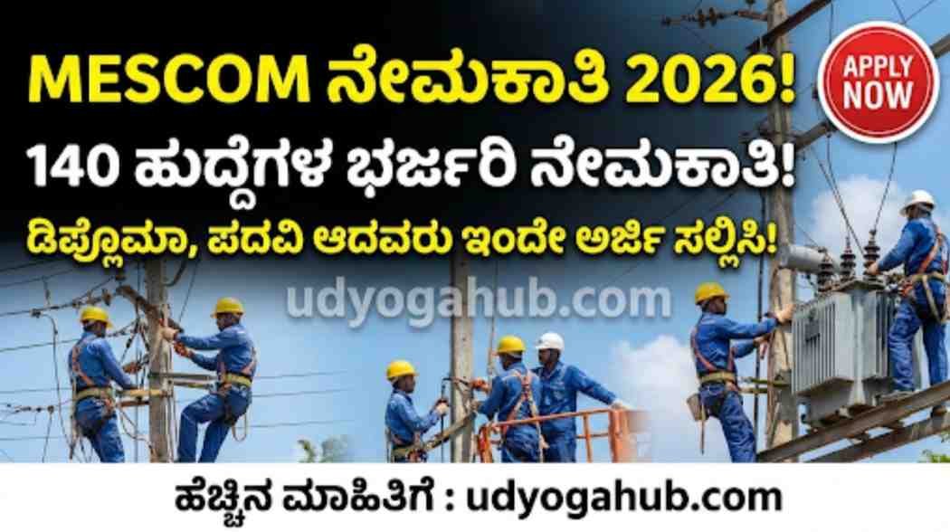 MESCOM ನೇಮಕಾತಿ 2026.! 140 ಹುದ್ದೆಗಳ ಭರ್ಜರಿ ನೇಮಕಾತಿ.!ಡಿಪ್ಲೊಮಾ ,ಪದವಿ ಆದವರು ಇಂದೇ ಅರ್ಜಿ ಸಲ್ಲಿಸಿ.!!